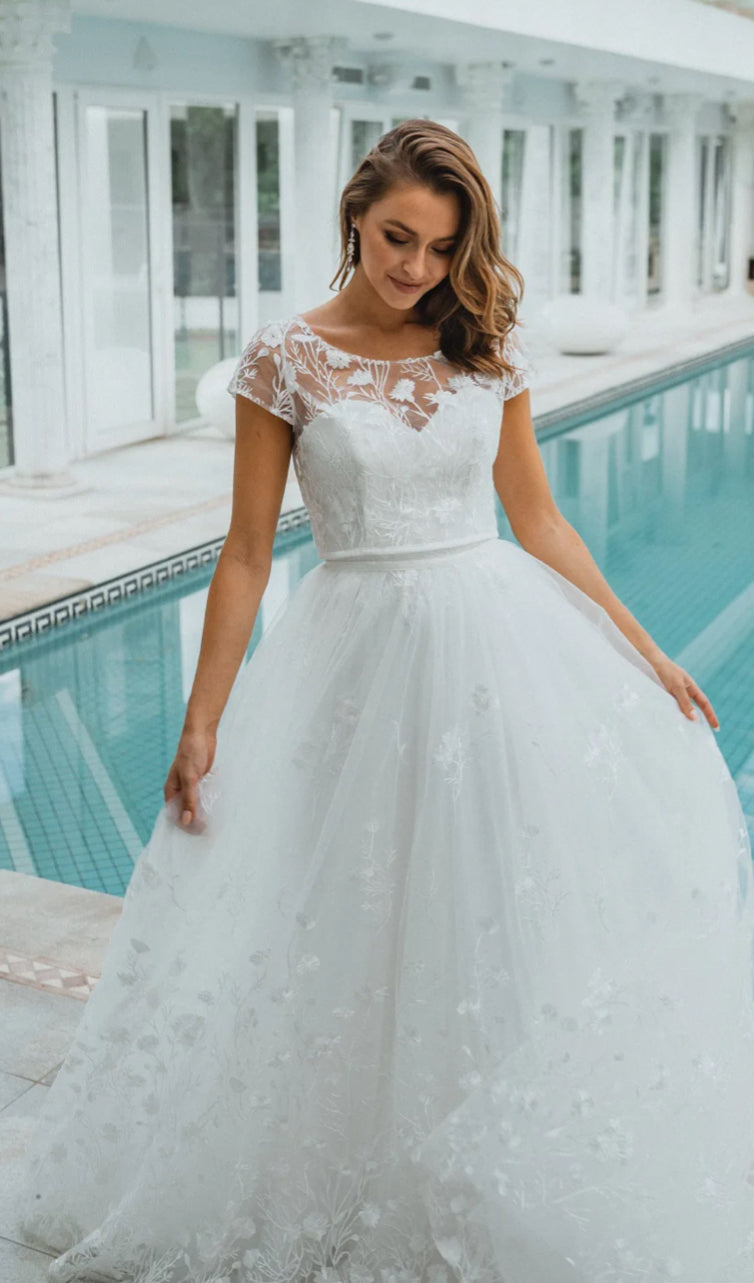 - Love knows no bounds in the Escape collection. This wedding dress top features a high scoop neckline, detachable lace bridal separate top available in sizes 2-30.