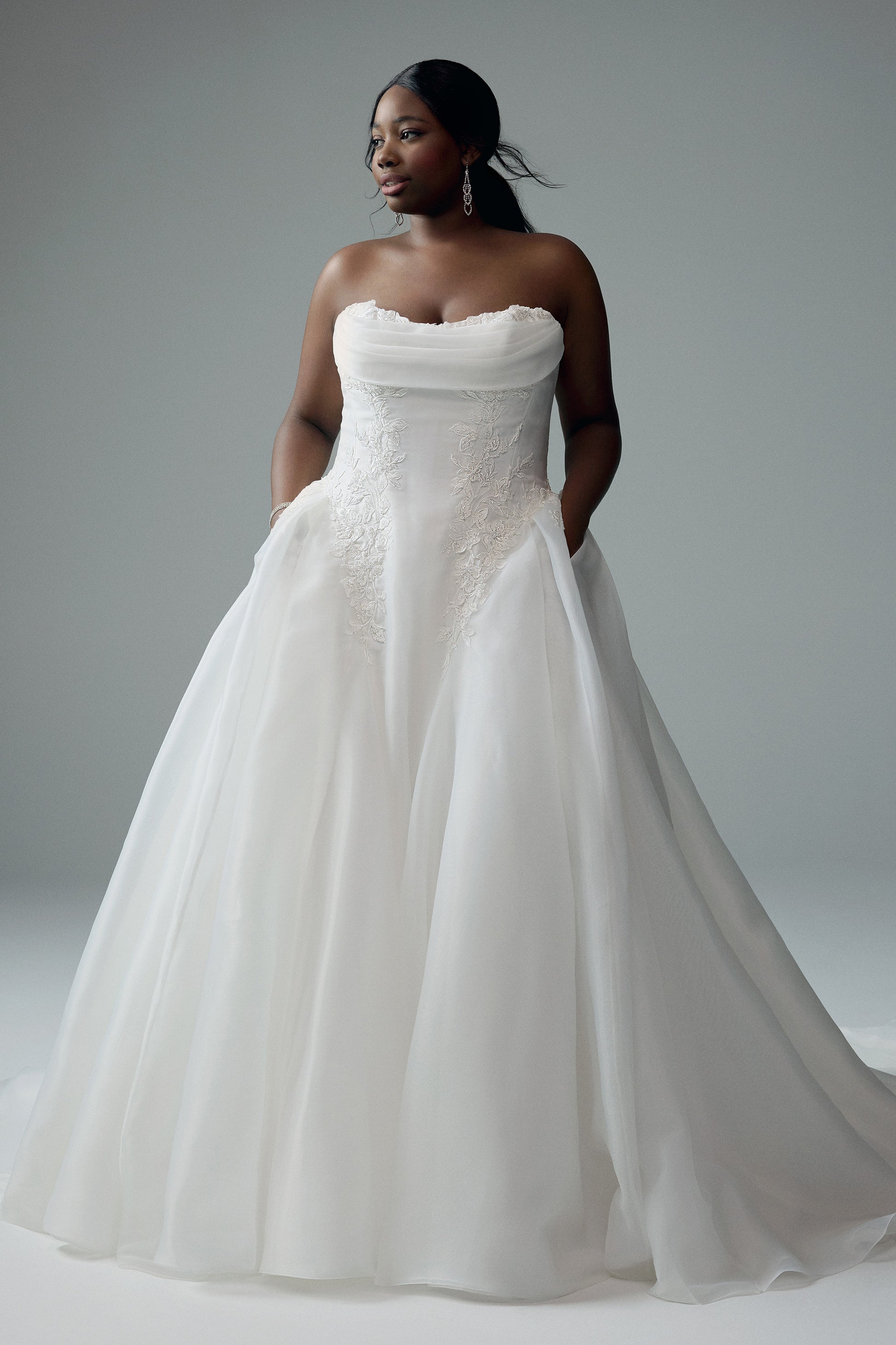 Dites « oui » dans notre robe de bal sans bretelles, Juliane ! Cette élégante robe princesse promet de donner vie à vos rêves de mariage royal, confectionnée en luxueuse organza.